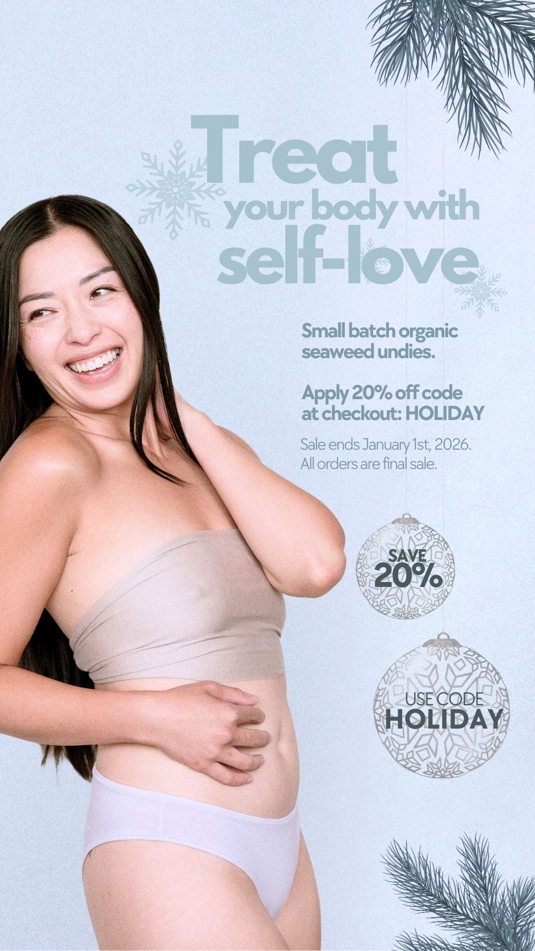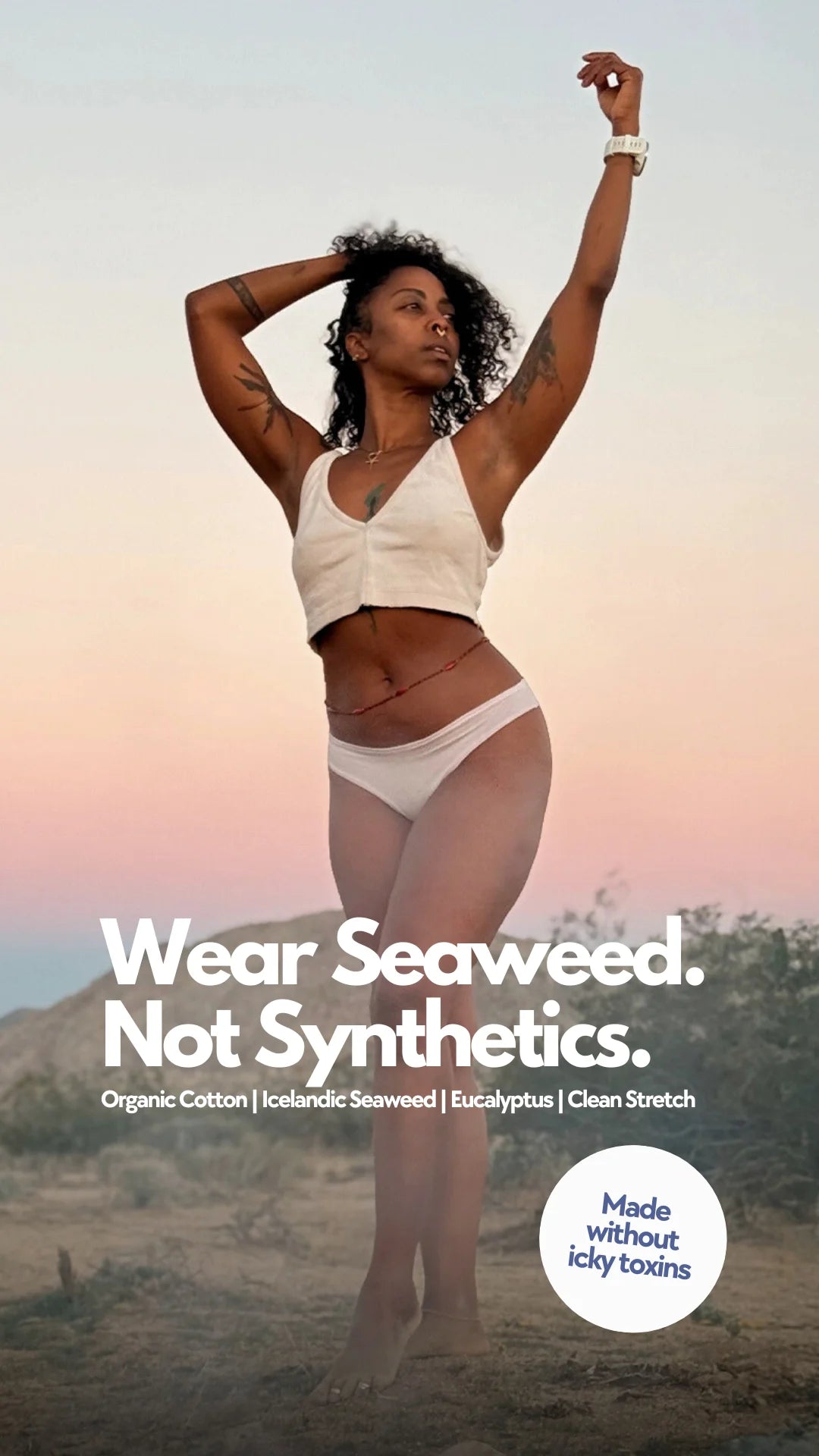We are ocean-obsessed. That’s why our undies are rich with skin-loving properties, derived from seaweed sustainably harvested every 4 years from the fjords of Iceland.