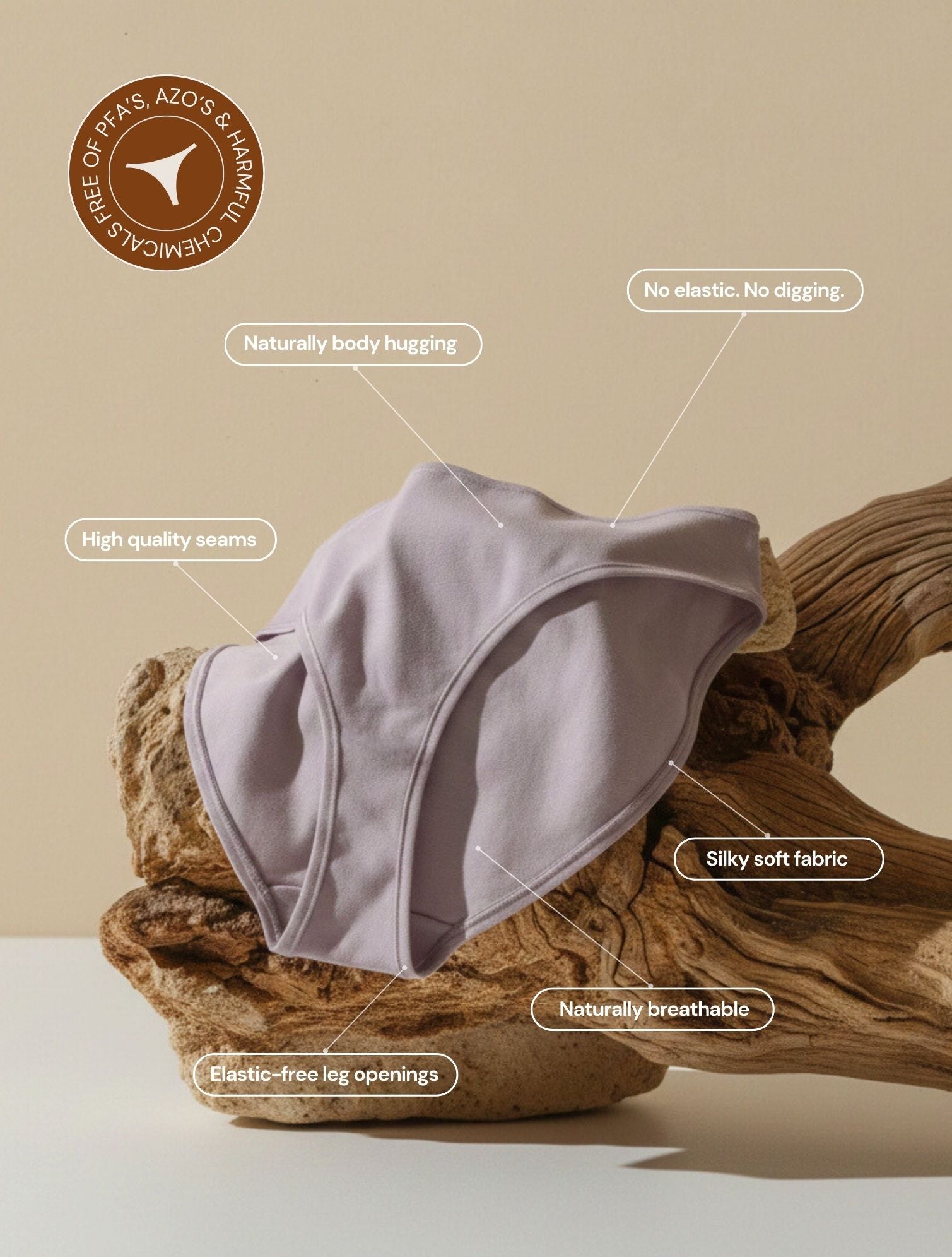 When your undies reach the end of their life, they break down into water and CO₂, leaving no trace behind. Unlike undies with conventional synthetics that last in landfills for centuries.